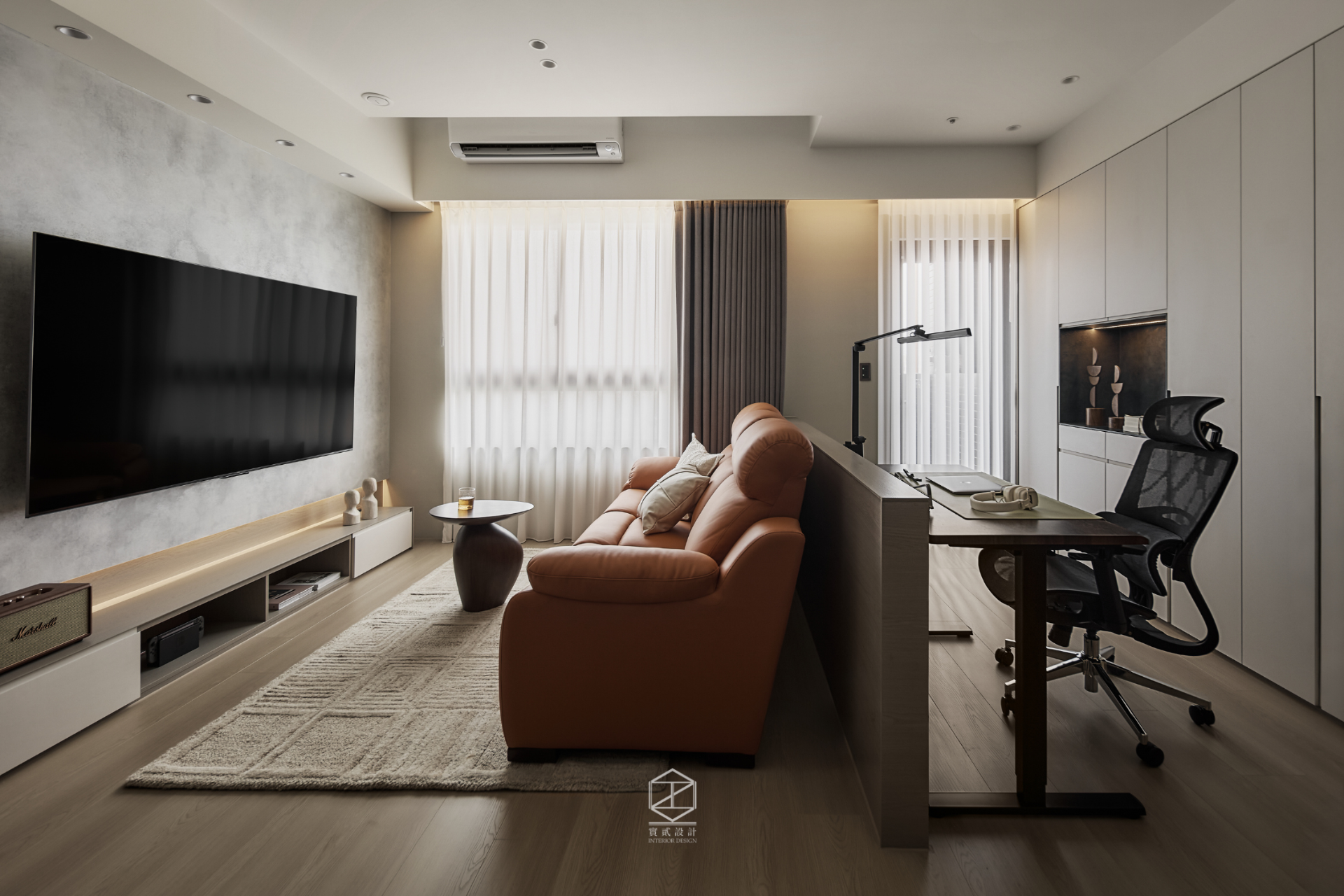本案設計融合了現代極簡風的理性俐落與日式侘寂風的內斂沉靜