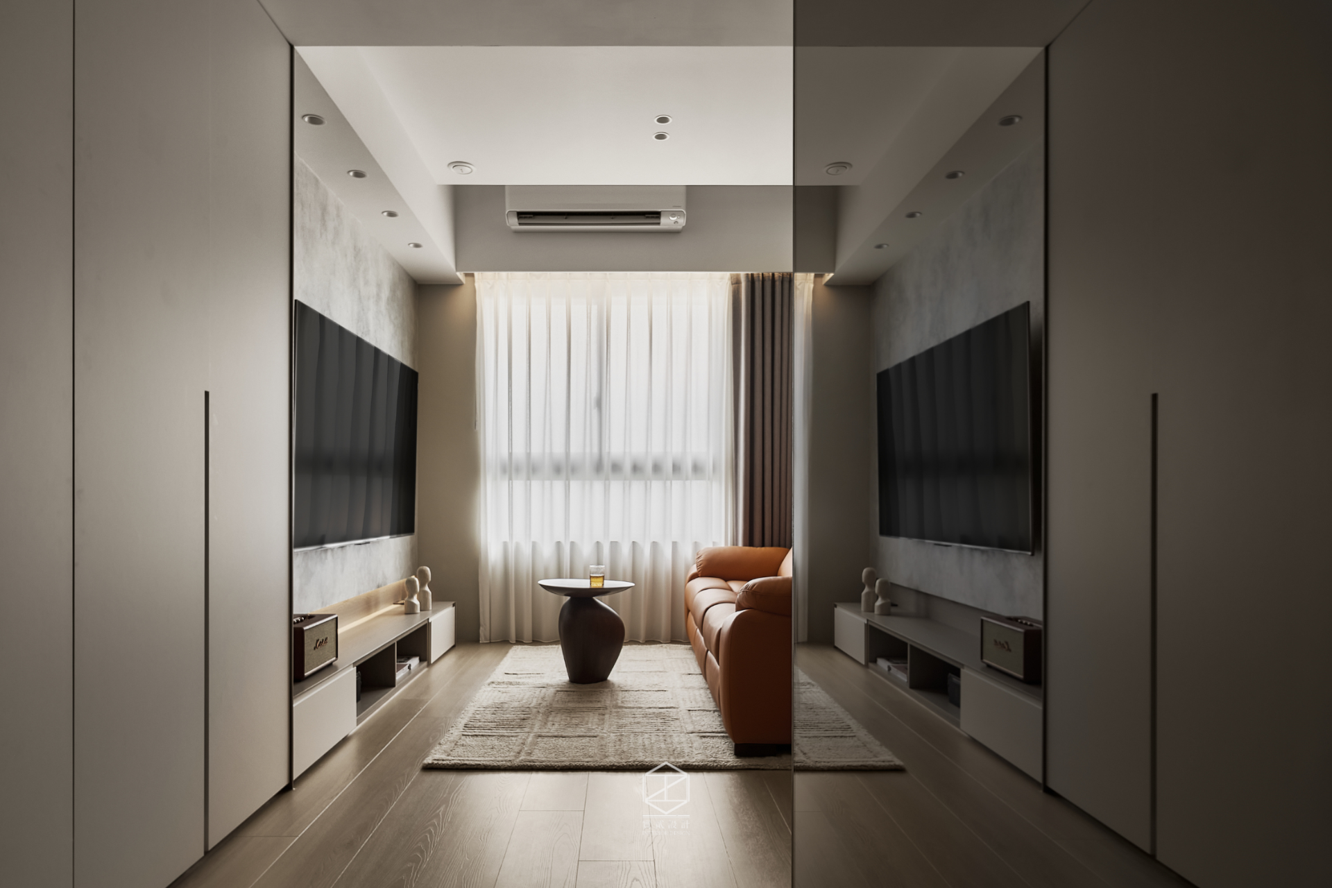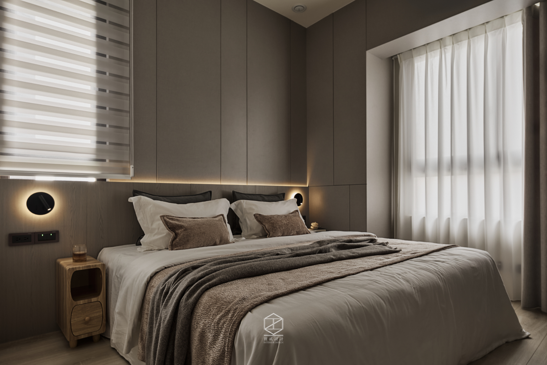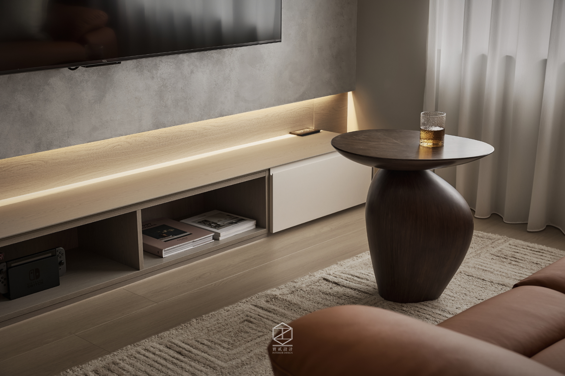 本案設計融合了現代極簡風的理性俐落與侘寂風的內斂沉靜