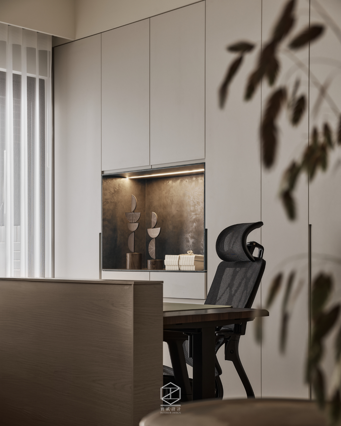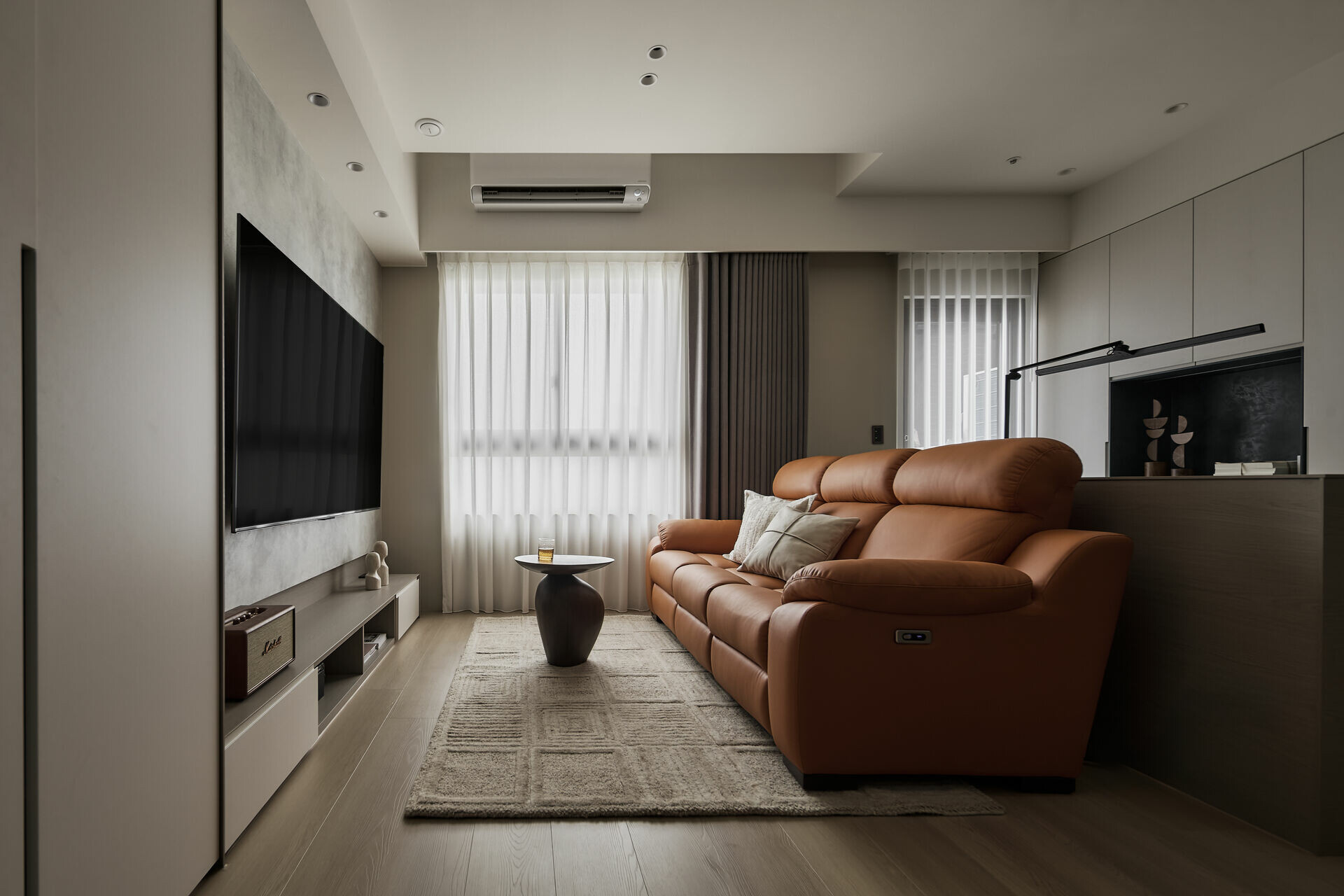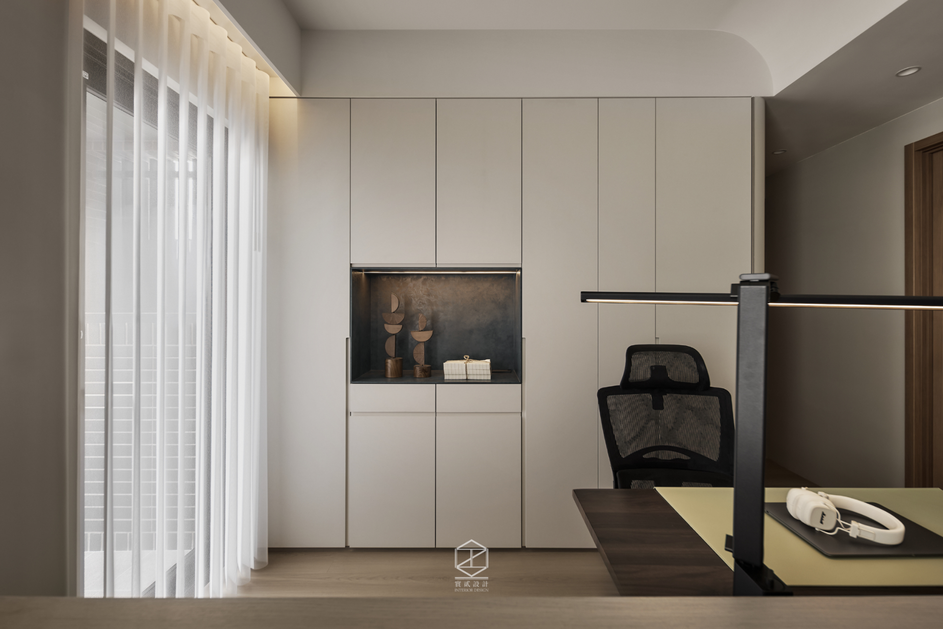 本案設計融合了現代極簡風的理性俐落與侘寂風的內斂沉靜